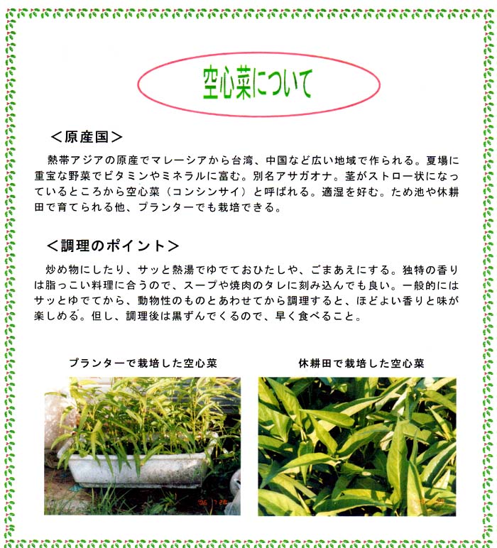 水辺の野菜 空心菜